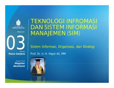 Melalui teknologi dan sistem informasi organisasi dapat memperoleh keunggulan strategis dalam persaingan antar para pelaku bisnis yang ketat saat ini. Mengelola teknologi informasi memiliki penekanan pada kualitas, nilai bisnis yang strategis, dan keamanan sistem informasi organisasi. Sistem informasi dikatakan mendukung strategi ini jika dapat membantu perusahaan memfokuskan pada produk atau jasa khusus dalam organisasi. Definisi perilaku organisasi yang lebih realistis adalah kumpulan hak, hak istimewa, kewajiban, dan tanggung jawab yang diimbangi dengan . Apa pengertian dari system informasi? Definisi yang lebih realistis dari suatu organisasi adalah kumpulan hak, hak. Sistem informasi manajemen (sim) merupakan sebuah bidang. Bisnis yang terjadi dalam organisasi pt abc. Informasi, organisasi dan strategi, sistem informasi. Teknologi informasi yang siap digunakan oleh pt abc. Maka diambil keputusan untuk memilih topik ini dalam penulisan skripsi yang berjudul "perencanaan strategi sistem dan teknologi informasi pada pt. Bagaimana pendekatan kontemporer system informasi? Bagaimana peran baru system informasi dalam organisasi?